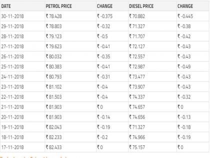 (सौजन्य : पेट्रोल-डिझेल प्राइज डॉट कॉम - दिल्ली)
