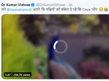 कुमार विश्वास यांनी मोदींचा हा व्हिडिओ ट्विटरवरुन शेअर करत एक कॅप्शन दिलं आहे. त्यामध्ये, विरोधकांना मोदी Once मोर असं तर सांगत नाहीत ना, असा सवाल विश्वास यांनी केला आहे.