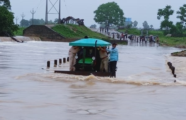 राज्यात आणखी दोन असाच मुसळधार पाऊस होण्याची शक्यता हवामाना खात्याने वर्तवली आहे. त्यामुळे, नागरिकांना घराबाहेर पडणेही कठीण बनले आहे. त्यातच, मंचेरियल जिल्ह्यात पोलिसांच्या खाकी वर्दीला माणूसकीचे दर्शन घडले. पुराच्या पाण्यामुळे गावातून शहराकडे येणारे सर्व रस्ते बंद झाले आहेत. मात्र, गरोदर महिलेला प्रसुतीच्या कळा जाणवू लागल्याने नातेवाईकांनी पोलिसांच्या मदतीने महिलेला कोटापल्ली येथील रुग्णालयात पोहोचवले. पाण्याचा प्रवाह असल्याने वाहनं वाहून जाण्याची शक्यता दाट होती. त्यामुळे, पोलिसांनी चक्क ट्रॅक्टरचा वापर करुन पाण्यातून मार्ग काढला.