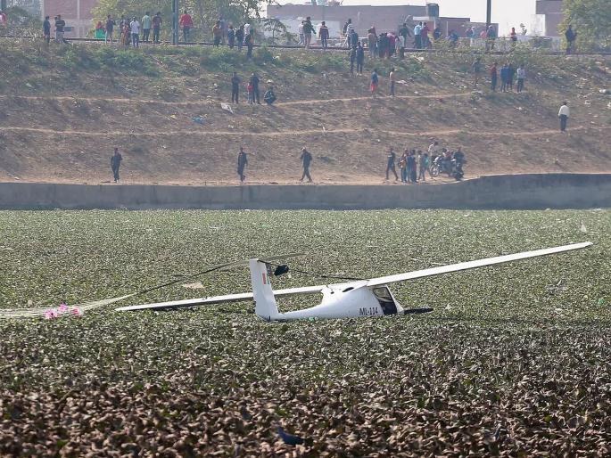 Web Summary : An Indian Air Force trainer crashed in Prayagraj. Pilots ejected safely using parachutes before it hit a water hyacinth-filled lake near KP College, avoiding casualties. Engine failure suspected. Both pilots suffered minor injuries and are hospitalized.