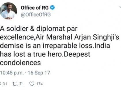 अर्जन सिंह यांना श्रद्धांजली वाहताना राहुल गांधी पुन्हा चुकले, ट्विटरकरांनी घेतली शाळा