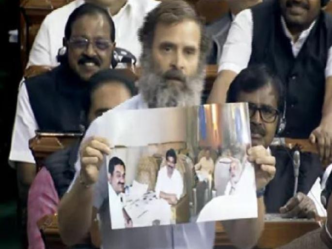 नवी दिल्ली: सध्या देशात अदानी प्रकरणाची चर्चा सुरू आहे. यावरुन विरोधक भाजप सरकारवर टीका करत आहेत. यावरुनच आज काँग्रेस नेते राहुल गांधी यांनी संसदेत तुफान फटकेबाजी केली. राष्ट्रपतींच्या अभिभाषणावर चर्चा सरू असताना राहुल यांनी गौतम अदानी आणि नरेंद्र मोदी यांचे फोटो दाखवत त्यांच्या संबंधांवर प्रश्न विचारला. तसेच, अदानींसाठी सरकारने नियमांमध्ये बदल केले आणि त्यांना मदत केल्याचेही राहुल गांधी म्हणाले.