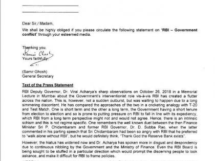 जर तुम्ही आरबीआयच्या कामातील ढवळाढवळ बंद केली नाही, तर त्याचे परिणाम भोगायलाही तयार राहा, असा इशाराच आरबीआय कर्मचाऱ्यांच्या संघटनेनं दिला आहे. सरकारकडून बँकांच्या स्वायत्ततेला धोका पोहोचवला जातोय, असाही या पत्रात उल्लेख आहे. आरबीआयचे उपगव्हर्नर विरल आचार्य यांनीही कर्मचारी संघटनेच्या आरोपांना दुजोरा दिला आहे. ज्यात सरकार हस्तक्षेप करत असल्याचं म्हटलं आहे. आरबीआय संघटनेच्या विधानानंतर राहुल गांधींनीही मोदी सरकारला लक्ष्य केलं आहे. आरबीआयचे गव्हर्नर ऊर्जित पटेल केंद्रीय बँकेला पंतप्रधान नरेंद्र मोदींपासून वाचवण्याचा प्रयत्न करत आहे हे कौतुकास्पद आहे, असंही राहुल गांधी म्हणाले आहेत.