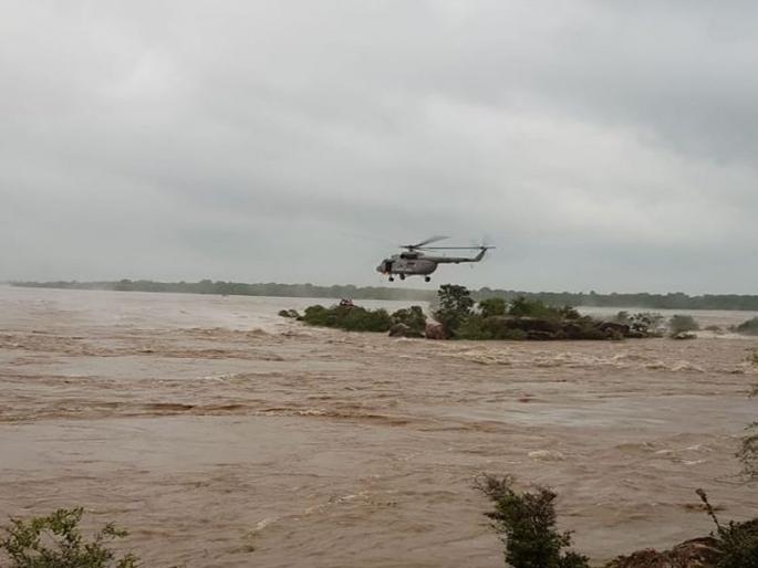 Rescue operation by Indian Air Force underway for 8 fishermen stranded on an island near Erech Dam on Betwa River in Garautha Tehsil of Jhansi. pic.twitter.com/22M93dlO9L