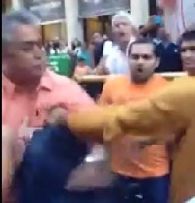 न्यू यॉर्क, दि. २९ - पंतप्रधान नरेंद्र मोदींचा जयघोष करणा-या अमेरिकेतल्या मोदीप्रेमींची पत्रकार राजदीप सरदेसाई यांच्याशी काल चांगलीच बाचाबाची झाली आणि एकमेकांना शिवीगाळ केल्यानंतर हातापायीपर्यंत वेळ आली. मॅडिसन स्क्वेअरमध्ये पंतप्रधानांच्या भाषणाला मिळालेल्या अभूतपूर्व प्रतिसादाच्या पार्श्वभूमीवर ही घटना किंचित गालबोट लावणारीच ठरली आहे.