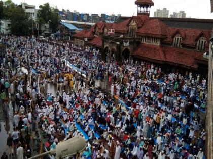 मुंबई- मुस्लीम बांधवांच्या पवित्र रमजान पर्वाची शुक्रवारी संध्याकाळी ७ वाजून ३५ मिनिटांनी चंद्रदर्शन घडल्याने सांगता झाली. दिल्लीतील जामा मशिदीच्या शाही इमामांनी शुक्रवारी चंद्र दर्शन झाल्यावर ईद उल फितर शनिवारी साजरी होणार असल्याची घोषणा केली. त्यामुळे आज देशभरात ईद-उल-फित्र अर्थात रमजान ईद साजरी केली जाते आहे. पहाटेच्या नमाज अदा करण्यापासून रमजान ईदचा उत्साह दिसू लागला आहे. सकाळपासूनच देशातील विविध भागात नमाज अदा करण्यासाठी मुस्लीम बांधवांची मोठ्या संख्येने उपस्थिती पाहायला मिळते आहे.