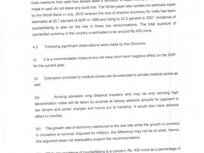 केंद्र सरकारने 2011-12 या वर्षीच्या तुलनेत 2015-16 या कालावधीत अर्थव्यवस्थेत 30 टक्क्यांनी वाढ झाल्याचा अंदाज व्यक्त केला. त्यावेळी 500 रुपयांच्या 76 टक्के आणि 1000 रुपयांच्या 109 टक्के वाढ झाली होती. त्यामुळे जवळपास 400 करोड बनावट नोटा बाजारात चलनात आल्याचा अंदाज सरकारने व्यक्त केला. मात्र बोर्ड सदस्य केंद्र सरकारच्या अंदाजावर असहमती दर्शवली. आरबीआय बोर्डाच्या सदस्यांनी सांगितले की, काळा पैसा हा रोख स्वरुपात न वापरता सोने आणि मालमत्तेच्या रुपात गुंतवणूक केली जाते. त्यामुळे नोटबंदीमुळे काळ्या पैशाला आळा बसण्याची शक्यता फार कमी आहे. मात्र नोटबंदीमुळे अर्थव्यवस्थेवर परिणाम होतील असं मतं बैठकीत मांडण्यात आले होते.