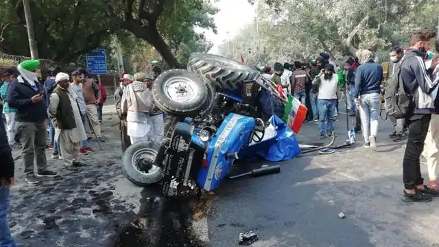 एक ट्रॅक्टर या मार्गावर पलटलेल्या अवस्थेत आढळला आहे. मृत शेतकरी ट्रॅक्टरवर स्वार असल्याचं सांगितलं जात आहे. आंदोलनकर्त्यांकडून एका डीटीसी बसची तोडफोडही करण्यात आली आहे. एका हिंदी वेबसाईटने याबाबतचे वृत्त दिले आहे. काही ठिकाणी पोलिसांनी आंदोलक शेतकऱ्यांवर लाठीचार्ज केल्याचा प्रकार घडला आहे. अनेक ठिकाणी पोलिसांनी बॅरिकेड लावून रस्ते अडविले आहेत. पोलिसांनी शेतकऱ्यांची ट्रॅक्टर परेड रोखण्याचा प्रयत्न केला. त्यामुळे परिस्थिती आणखी चिघळली आहे, याच दरम्यान आता ही ट्रॅक्टर परेड रोखण्यासाठी पोलीस चक्क रस्त्यावरच बसलेले पाहायला मिळत आहे.