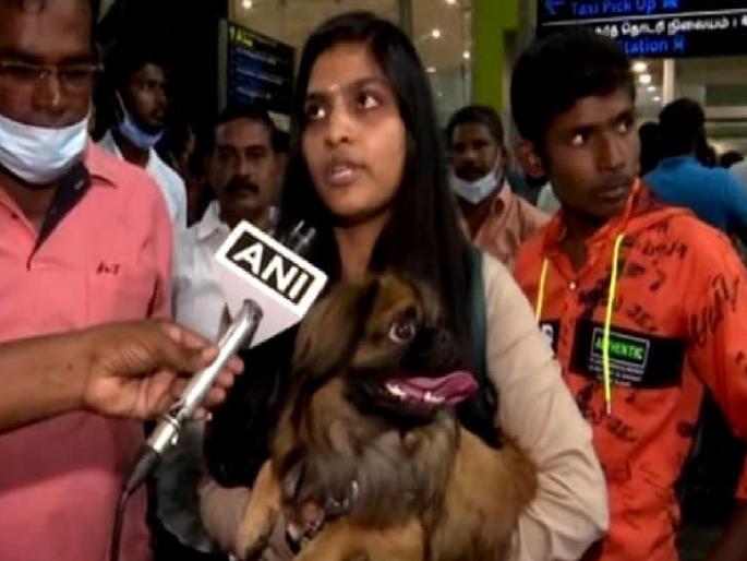 चेन्नई: रशिया-युक्रेन यांच्यातील युद्धामुळे हजारो भारतीय विद्यार्थी युक्रेनमध्ये अडकले आहेत. त्यांना परत आणण्यासाठी केंद्राकडून 'ऑपरेशन गंगा'(Operation Ganga) चालवले जात आहे. याअंतर्गत युक्रेनमध्ये वैद्यकीय शिक्षणाच्या पाचव्या वर्षात शिकत असलेली एक तरुमी भारतात परतली. विशेष म्हणजे, ती एकटी आली नाही, तर सोबत आपल्या पाळीव कुत्रा 'कँडी' यालाही घेऊन आली.