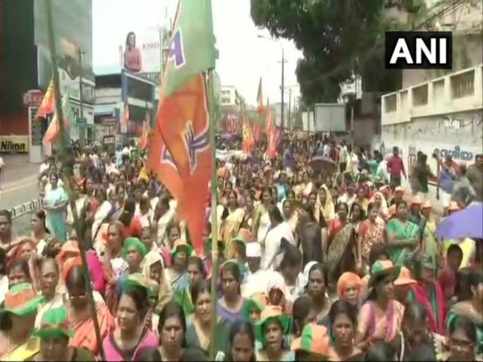 तिरुअनंतपुरम - सबरीमाला मंदिरातील महिलांच्या प्रवेशासंदर्भात सुप्रीम कोर्टानं महत्त्वपूर्ण निकाल दिला. मात्र, गेल्या काही दिवसांपासून या ऐतिहासिक निर्णयाला विरोध दर्शववणारे मोर्चे काढले जात आहेत. सुप्रीम कोर्टाच्या निर्णयाचा हिंदुत्ववादी संघटनांनी कडाडून विरोध केला आहे. मंदिरातील महिला प्रवेश निर्णयाला विरोध दर्शवण्यासाठी सोमवारी (15 ऑक्टोबर) भाजपानंही मोर्चा काढला.