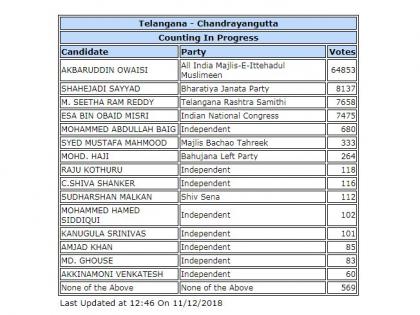 चंद्रयान गुट्टा मतदारसंघातून बाजी मारत अकबरुद्दीने ओवैसी यांनी पाचव्यांदा आपली आमदारकी कायम राखली आहे. निवडणुकीच्या प्रचारात पंतप्रधान नरेंद्र मोदी यांना मारण्याची भाषा अकबरुद्दीन ओवैसी यांनी केली होती. उत्तर प्रदेशचे मुख्यमंत्री योगी आदित्यनाथ आणि ओवैसी बंधूंमध्येही शब्दयुद्ध रंगलं होतं. त्यामुळे एमआयएमच्या निवडणुकीतील कामगिरीबद्दल उत्सुकता होती. त्यामध्ये केवळ भाषणबाजीतूनच नाही तर, मतदारांना आपल्याकडे खेचण्यातही अकबरुद्दीन यांना यश मिळाले आहे. अकबरुद्दीन यांना 64,853 मतं मिळाली असून त्यांच्याविरोधातील काँग्रेस उमेदवाराला 7475 मतं मिळाली आहेत. तर, भाजपा उमेदवाराला 8137 मते घेण्यात यश आले. तसेच राज्यात सत्ता राखण्यात यशस्वी ठरलेल्या तेलंगणा राष्ट्र समितीला येथील जागा खेचून आणण्यात अपयश आले आहे. कारण, टीआरएसच्या उमेदवाराला येथे 7658 जागांवर विजय मिळाला आहे. त्यामुळे ओवेसींपुढे काँग्रेस, भाजपा, टीआरएससह शिवसेना आणि इतर सर्वच अपक्ष उमेदवारांचे डिपॉझिट जप्त झाले आहे. या निवडणुकीत नोटाला 569 मतं मिळाली आहेत.