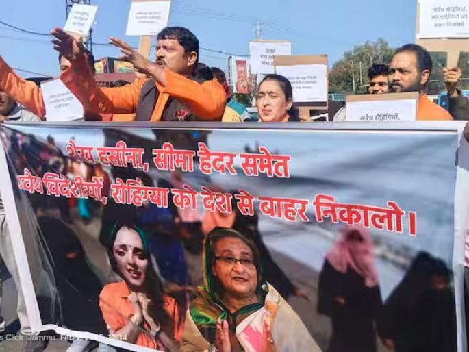 जम्मूमध्ये केंद्र सरकारच्या विरोधात निदर्शने करणाऱ्या शिवसेनेच्या कार्यकर्त्यांनी 'सीमा हैदरला परत पाठवा', 'शेख हसीनाला परत पाठवा' आणि 'रोहिंग्यांना परत पाठवा' अशा घोषणा दिल्या. ज्याप्रमाणे अमेरिकेने स्थलांतरितांविरोधात कठोर भूमिका घेतली आहे, त्याचप्रमाणे भारतानेही बेकायदेशीर भारतात राहणाऱ्या स्थलांतरितांवर कठोर कारवाई करावी, अशी मागणी जम्मू शिवसेनेच्या कार्यकर्त्यांनी केली.