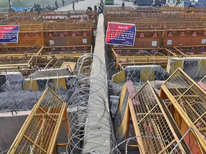 दिल्ली पोलिसांकडून शेतकरी आंदोलकांना रोखण्यासाठी फक्त बॅरिकेट्स उभारण्यात आलेले नाहीत. तर बॅरिकेट्ससोबतच मोठे कंटेनर्स ठेवून रस्ते ब्लॉक करण्यात आले आहेत. या कंटेनर्समध्ये सिमेंटच्या गोण्या भरण्यात आल्यात. दिल्लीच्या दिशेनं एक पाच फुटांची सिमेंटची भिंत उभारण्यात आलीय तर बॅरिकेट्सची भलीमोठी रांगच या भिंती पलिकडे उभारण्यात आली आहे.