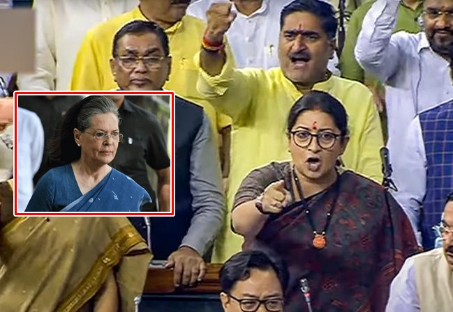 आदेश रावललोकमत न्यूज नेटवर्कनवी दिल्ली : केंद्रीय मंत्री स्मृती इराणी व काँग्रेस अध्यक्षा सोनिया गांधी यांच्यात लोकसभेत गुरुवारी शाब्दिक चकमक झाली. काँग्रेसने म्हटले आहे की, स्मृती इराणी यांनी काँग्रेस अध्यक्षा सोनिया गांधी यांच्याशी अयोग्य व अवमानकारक वर्तन केले. तथापि, सोनिया गांधी भाजपच्या खा. रमा देवी यांच्या जवळ गेल्या व अधीर रंजन चौधरी यांनी त्यांच्या चुकीसाठी माफी मागितलेली आहे, हे सांगितले. एवढ्यात स्मृती इराणी यांनी बोलण्यास प्रारंभ केला. त्या म्हणाल्या की, सोनिया गांधी यांनी पक्षाच्या वतीने माफी मागावी. त्यावर सोनिया गांधी म्हणाल्या की, मी तुमच्याशी बोलत नाही. त्यावेळी तेथे उपस्थित असलेले विरोधी पक्षांच्या व काँग्रेसच्या खासदारांनी ‘लोकमत’ला सांगितले की, त्यानंतर भाजपच्या महिला व पुरुष खासदारांनी काँग्रेस अध्यक्षा सोनिया गांधी यांना घेरण्याचा प्रयत्न केला. संसदेत दिवसभर याच मुद्द्याची चर्चा सुरू होती.