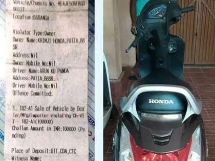 त्याचे झाले असे की, ही दुचाकी, भुवनेश्वर येथून 28 ऑगस्ट रोजी खरेदी करण्यात आली होती. 12 सप्टेंबर रोजी या स्कूटरला कटकमध्ये एका नियमित तपासणी नाक्यावर या स्कूटरला अडवण्यात आले. त्यावेळी केलेल्या तपासणीत स्कूटरवर तपासणी नंबर नसल्याचे समोर आले. त्यानंतर आरटीओ अधिकाऱ्यांनी गाडीवर रजिस्ट्रेशन प्लेट नसल्याचे सांगत आरटीओ अधिकाऱ्यांनी डीलरला एक लाख रुपयांचा दंड ठोठावला. तसेच त्याचा डीलरशिप ट्रेड परवाना रद्द करण्याची सूचना केली गेली.