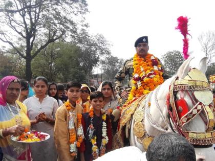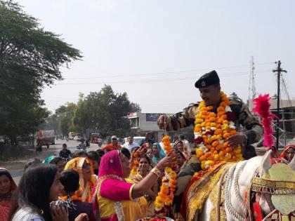 घोड्यावरून जंगी मिरवणूक अन् लोकांची प्रचंड गर्दी; सैनिक गावात पोहचताच झालं भव्य स्वागत