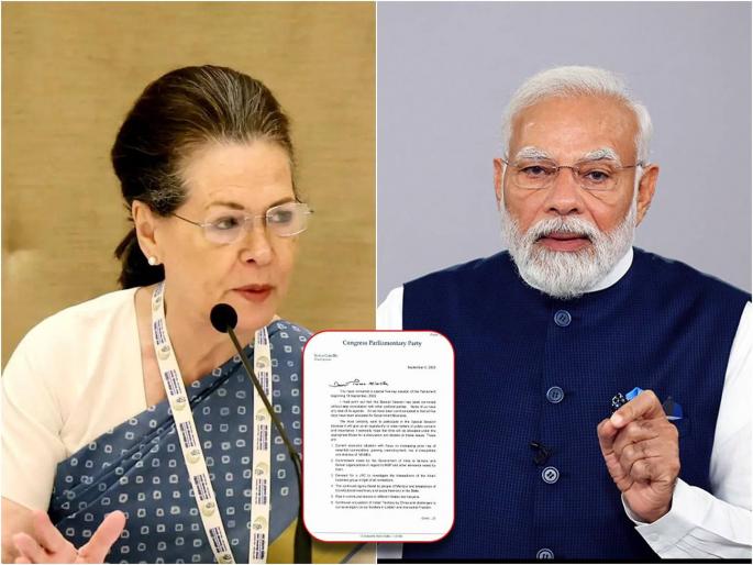 सोनिया गांधींनी पत्रात म्हटलंय की, या विशेष अधिवेशनाचा अजेंडा काय याची आम्हाला कुणालाही कल्पना नाही. ५ दिवसांसाठी हे अधिवेशन बोलावलंय. आम्हाला विशेष अधिवेशनात नक्कीच सहभागी व्हायचे आहे. कारण याठिकाणी जनतेच्या महत्त्वाच्या प्रश्नांना वाचा फोडण्याची संधी मिळते. त्यामुळे योग्य नियमाअंतर्गत ९ मुद्द्यांवर चर्चेसाठी सरकारने वेळ द्यावा. सोनिया गांधींनी पत्रात आर्थिक स्थिती, शेतकऱ्यांच्या मागण्या, अदाणी समुहाबाबत खुलासे, जातीय जणगणना, संघराज्यपद्धतीवर हल्ले यासह ९ मुद्द्यांवर चर्चेचा आग्रह धरला आहे.