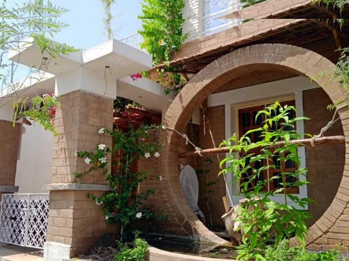 विटा बांधण्यासाठी वापरली लाल माती 1. जगदीश्वरन यांनी २०२१ मध्ये घर बांधण्याचा निर्णय घेतला. त्यांनी लाल माती गोळा केली. 2. मातीमध्ये अगदी कमी सिमेंटचा वापर करून कच्च्या विटा तयार केल्या आणि गरम न करताच वापरल्या. ११०० चौरस फुटांच्या घरात विविध तंत्रांचा वापर करण्यात आला. छतही १०,००० विटांनी बनवल्याचं ते सांगतात. 3. विटांमधील अंतर कमी करण्यासाठी सिमेंटऐवजी लाल मातीच्या पावडरचा वापर केला. टाइल्सऐवजी त्याच विटांचा वापर फरशीसाठीही करण्यात आला.