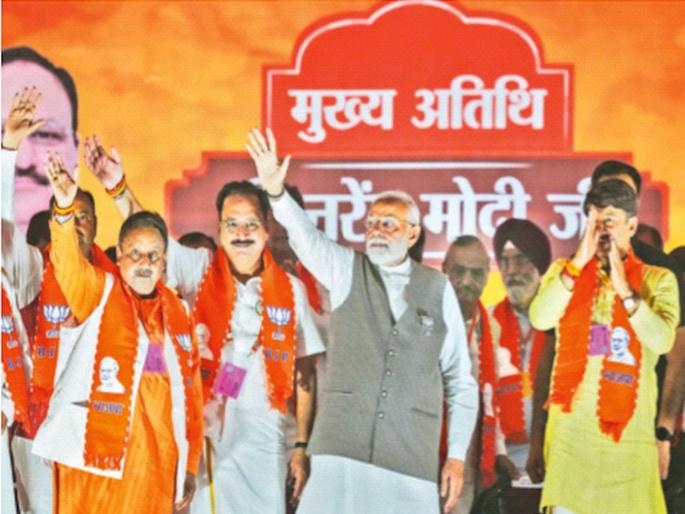 लोकसोचे ‘कुरुक्षेत्र’, विकास विरुद्ध व्होट जिहाद! लोकसभा निवडणूक हे ‘कुरुक्षेत्र’ असून त्यात भाजपचा विकास आणि विरोधकांचा ‘व्होट जिहाद’ यांच्यात खरी लढत असून, यापैकी एकाची निवड मतदारांना करायची आहे, असे प्रतिपादन मोदी यांनी हरियाणातील गोहाना येथील जाहीर सभेत केले. त्यांनी सांगितले की, विरोधकांना कोणतीही किंमत मोजून सत्ता हवी आहे आणि ही किंमत आहे देशाची सुरक्षा व स्थिरता यांचा बळी. आपल्या धाकड सरकारने घटनेतील ३७० कलमाची भिंत पाडून टाकली, त्यामुळे आता काश्मीर विकासाच्या मार्गावर घोडदौड करीत आहे.