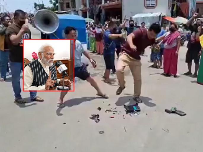 मोदी सरकारचा विरोध करत रविवारी मन की बात कार्यक्रमानंतर मणीपूरमधील लोकांनी रेडिओची तोडफोड करत निषेध व्यक्त केला. पंतप्रधान मोदींनी अद्याप पूर्वेत्तर राज्यातील हिंसाचारावर किंवा मणीपूरबद्दल कुठेही विधान केलं नाही. त्यातच, रविवारी मन की बात कार्यक्रमात मोदी मणीपूरबद्दल काहीतरी बोलतील, असं अनेकांना वाटत होतं. मात्र, या कार्यक्रमातही मणीपूरचा साधा उल्लेखही झाला नाही. त्यामुळे, संतप्त नागरिकांनी रेडिओ फोडून मन की बात कार्यक्रमास विरोध दर्शवला.