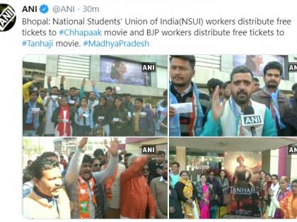 काँग्रेसकडून 'छपाक' तर भाजपाकडून 'तानाजी' चित्रपटाची तिकीटं फ्री.. फ्री.. फ्री...