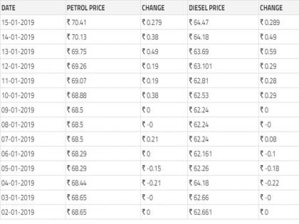 Petrol and diesel prices at Rs. 70.41/litre (increase by Rs 0.28) & Rs. 64.47/litre (increase by Rs. 0.29), respectively in Delhi. Petrol and diesel prices at Rs. 76.05/litre (increase by Rs. 0.28) & Rs. 67.49/litre (increase by Rs. 0.31), respectively in Mumbai. pic.twitter.com/jNyvBxwtKq