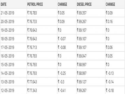 (सौजन्य : पेट्रोल-डिझेल प्राइज डॉट कॉम - दिल्ली)