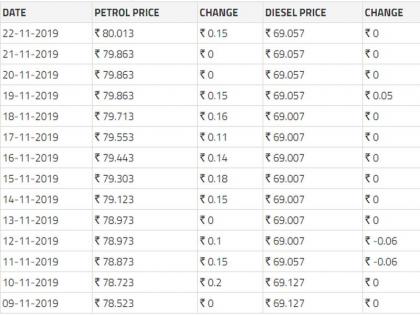 (सौजन्य : पेट्रोल-डिझेल प्राइज डॉट कॉम - दिल्ली)