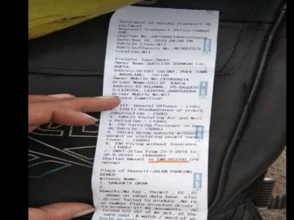 1 सप्टेंबरपासून पाच राज्ये वगळता अन्य राज्यांमध्ये नवीन वाहतूकीचे नियम लागू झाले आहेत. यामध्ये अव्वाच्या सव्वा दंड आकारला जात आहे. नव्या कायद्यानुसार मर्यादेपेक्षा वेगाने वाहन चालविणे, विना परवाना गाडी चालविणे, हेल्मेट व सीट बेल्टचे नियम न पाळणे आदींसाठी पूर्वीच्या तुलनेत पाचपट दंड आकारण्यात येत आहे. त्यातच आता ओडिशामध्ये आतापर्यत सर्वात मोठे पावती फाडण्यात आल्याचे समोर आले आहे.