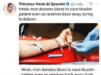मुस्लिम महिलेचे प्राण वाचवण्यासाठी हिंदू व्यक्तीचं रक्तदान; यूएईची राजकुमारी म्हणते...