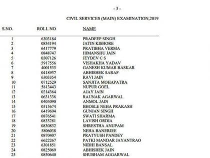 सिव्हिल सेवा परिक्षेतील टॉप 25 जणांची यादी....