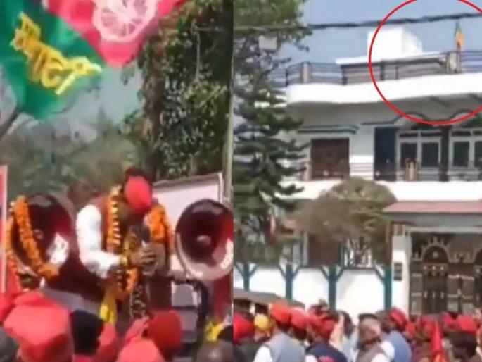 बुधवारी म्हणजेच उद्या उत्तर प्रदेश विधानसभा निवडणुकीच्या चौथ्या टप्प्यातील मतदान होणार आहे. बलियाच्या सदर विधानसभा मतदारसंघातून सपाचे नारद राय (SP Candidate Narad Rai) उभे राहिले आहेत. ते मतदारसंघात सध्या प्रचारात व्यस्त आहेत. सोमवारी ते त्यांच्या वडिलोपार्जित घरासमोर प्रचारासाठी आले होते. परंतू घराकडे पाहताच त्यांना मोठा धक्का बसला. त्यांच्या घरावर भाजपाचा झेंडा फडकत होता.