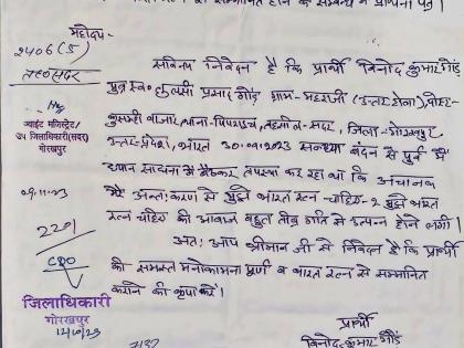 पत्र लिहिणाऱ्या युवकाने स्वतःचे नाव विनोद कुमार गोंड असे सांगितले आहे. विनोदच्या म्हणण्यानुसार, तो गोरखपूरच्या सदर तहसीलमधील पिपराइच पोलीस स्टेशन परिसरात राहणारा आहे. ३० सप्टेंबर रोजी संध्यावंदनावेळी ध्यानस्थ बसलो असताना अचानक माझ्या अंतरात्म्यातून आपल्याला भारतरत्न मिळावा म्हणून जोरदार आवाज आला. माझी इच्छा पूर्ण व्हावी. मला भारतरत्न पुरस्काराने सन्मानित करण्यात यावे, अशी विनंती आहे, असे पत्र विनोदने लिहिले आहे. यानंतर आता खासदार, आमदारांना इच्छा पूर्ण करण्यासाठी विनोद आवाहन करत आहे.