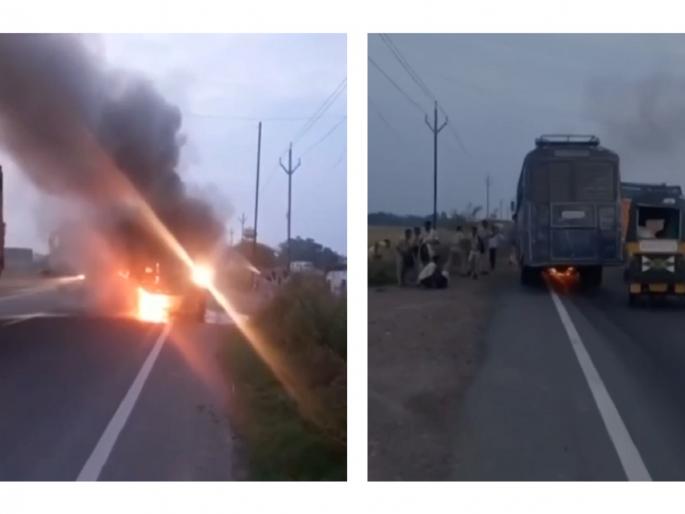 पोलीस पळून गेलेअपघात एवढा भीषण होता की, धडक बसल्यानंतर एक तरुण बससोबत शंभर फूट फरफटत गेला आणि बसखाली अडकला. यादरम्यान, बसच्या पेट्रोल टँकला आग लागून मोठा भडका उडाला. यावेळी बसखाली अडकलेला तरुण जळत राहिला. धक्कादायक बाब म्हणजे, त्या तरुणाला वाचवण्याऐवजी पोलीस कर्मचारी पळून गेले. ही संपूर्ण घटना कॅमेऱ्यात कैद झाली.