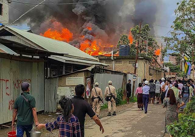 सूत्रांनी दिलेल्या माहितीनुसार, सुमारे 1,000 लोकांच्या जमावाने पॅलेस कॉम्प्लेक्सजवळ असलेल्या इमारतींना आग लावण्याचा प्रयत्न केला. अधिकाऱ्यांनी दिलेल्या माहितीनुसार, आरएएफने जमावाला पांगवण्यासाठी प्रयत्न केले. त्यांनी सांगितले की, इम्फाळमध्ये जमावाने आमदार बिश्वजित यांच्या घरालाही आग लावण्याचा प्रयत्न केला. मात्र, आरएएफच्या ताफ्याने जमावाला पांगवले. अधिकाऱ्यांच्या म्हणण्यानुसार, मध्यरात्रीनंतर जमावाने सिंजमाई येथील भाजपा कार्यालयाचा घेराव केला, परंतु सैन्याने जमावाला पांगवल्यामुळे ते नुकसान करू शकले नाहीत.