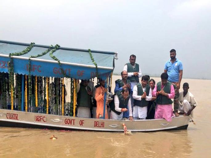 नवी दिल्ली : दिल्ली भाजपाचे अध्यक्ष मनोज तिवारी यांनी काल माजी पंतप्रधान अटल बिहारी वाजपेयी यांच्या अस्थींचं यमुना नदीत विसर्जन केलं. तिवारी यांनी अस्थी विसर्जनाचा फोटो ट्विट केला आहे. सध्या या फोटो सोशल मीडियावर व्हायरल झाला आहे. या फोटोत तिवारी यांच्यासह भाजपाचे नेते बोटीवर दिसत आहेत.