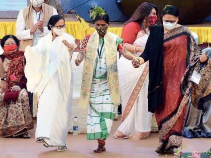 या कार्यक्रमात ममता बॅनर्जी यांनी अनेक लोककलावंतांना सन्मानित केले. यात संगीतकार, गायक आणि नृत्य कलाकारांचाही समावेश होता. बसंती हेम्ब्रम यांना सन्मानित करताना ममतांनी त्यांच्यासोबत नृत्यही केले. यावेळी, बसंती ममताना नृत्याच्या काही स्टेप्स शिकवतानाही दिसल्या. यावेळी ममता बॅनर्जींनीही नृत्याचा आनंद घेतला.