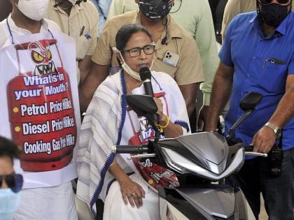 मुख्यमंत्री ममता बॅनर्जी यांनी पेट्रोल आणि डिझेल दरवाढीविरोधात स्कूटरची सवारी केली होती -