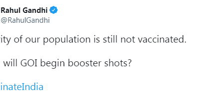 आरोग्य मंत्रालयाच्या म्हणण्यानुसार, देशात लसीकरणाचे काम जोरात सुरू आहे. दुसरीकडे, काँग्रेस खासदार राहुल गांधी यांनी लसीकरणाच्या संथ प्रक्रियेवर प्रश्नचिन्ह उपस्थित केले असून आपल्या देशातील बहुतांश लोकसंख्येला अजूनही लसीकरण झालेले नाही, असे म्हटले आहे. तसेच, बूस्टर डोस कधी मिळणार असा प्रश्नही विचारला आहे.