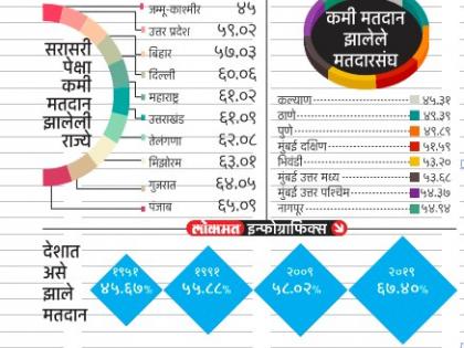 ११ माेठ्या राज्यांमध्ये मतदानाचे प्रमाण राष्ट्रीय सरासरीपेक्षा कमी.