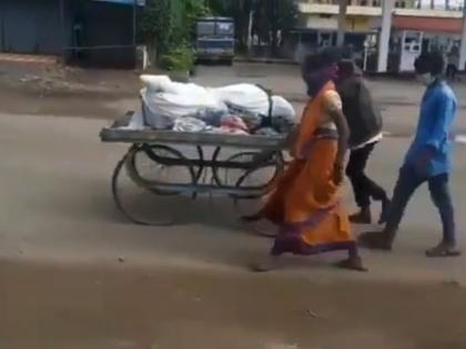 कोरोनाचा धसका! आपलेही झाले परके... पतीचा मृतदेह हातगाडीवरुन नेऊन पत्नीने केले अंत्यसंस्कार