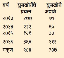 नवी दिल्ली : पाकिस्तानच्या बाजूने २०१५ व त्या आधीच्या वर्षांच्या तुलनेत गेल्यावर्षी घुसखोरींमध्ये खूपच वाढ झाल्याचे केंद्रीय गृहमंत्रालयाने मान्य केले आहे. २०१६ या कॅलेंडर वर्षात घुसखोरीचे प्रयत्न आणि कुंपणाच्या तारेतून झालेली घुसखोरी यात २०१५ वर्षाच्या तुलनेत वाढ झाली आहे. गृहमंत्रालयाच्या २०१६-२०१७ वर्षाच्या वार्षिक अहवालात घुसखोरीचे प्रयत्न आणि कुंपणाच्या तारेतून झालेली घुसखोरी कमी झाली होती; परंतु ती फार मोठ्या प्रमाणावर २०१६ मध्ये (तक्ता पाहा) वाढली, असे म्हटले. २०१६ मध्ये दहशतवादी घटनांमध्ये २०१५ च्या तुलनेत एकदम वाढ झाली. मागच्या वर्षी ३२२ दहशतवादी हल्ले झाले होते, तर त्या आधीच्या वर्षी ते २०८ होते. २०१६ मध्ये सुरक्षा दलांचे कर्मचारी ठार मारले जाण्याचे प्रमाणही वाढले आहे. जम्मू आणि काश्मीरमधील सततचा हिंसाचार आणि दहशतवादासाठी या अहवालात पाकिस्तानला पूर्णपणे दोष दिला आहे. जम्मू आणि काश्मीरमध्ये १९९० मध्ये अतिरेकी कारवायांना सुरुवात झाली तेव्हापासून ३१ डिसेंबर २०१६ पर्यंत १३ हजार ९३६ नागरिक व पाच हजार ४३ सुरक्षा दलाचे कर्मचारी ठार झाले आहेत. २०१६ या वर्षात पाकिस्तानच्या डावपेचांत बदल झाल्याचे दिसले, असे अहवाल म्हणतो. त्याने ‘नागरी विरोधा’वर मूलतत्त्ववादी विचार लादले. त्यासाठी हितसंबंधी गटांनी मूलतत्त्ववादी विचारांचा व समाजमाध्यमांचा वापर केला. असे असले तरी खोऱ्यात परिस्थितीत सुधारणाच होत आहे. प्रत्येक सरकारने वेगवेगळे उपाय राबविल्यामुळे व पंतप्रधान नरेंद्र मोदी यांनी २०१५ मध्ये विशेष पॅकेजची घोषणा केल्यामुळे खोऱ्यात शांतता परत निर्माण होईल, अशी सरकारला आशा आहे.