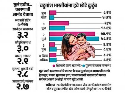 Falling Fertility Rate in India: मुलं हवी आहेत असे ६१ टक्के पुरुष व ७० टक्के स्त्रियांनी सांगितले. त्यातील ९० % पेक्षा जास्त लोकांना मुलं हवीत.