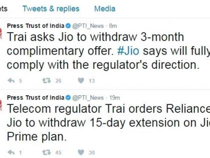 प्राइम मेंबरशिप घेण्यासाठी जिओने दिलेली 15 दिवसांची वाढीव मुदत मागे घेण्याचे आदेश ट्रायने दिले आहेत.