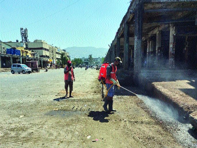 पाणी मारून धूळही साफ करण्यात आली. मार्केट धुतल्यानंतर रस्ते, गटार व गाळ्यांच्या परिसरामध्ये औषध फवारणी, किटकनाशक फवारणी करण्यात आली.