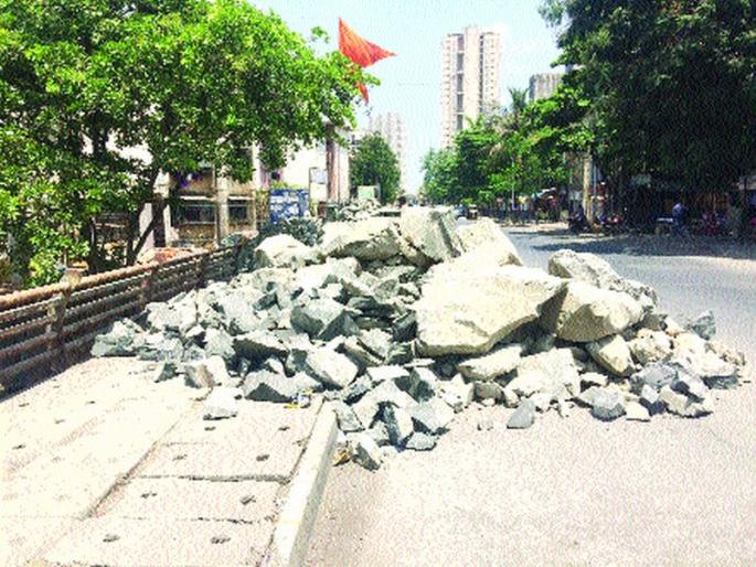 बांधकामांच्या साहित्यामुळे पदपथांचे नुकसान; नव्याने दुरुस्ती केलेल्या गटारांची दुरवस्था