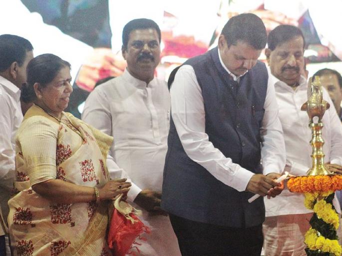 दरम्यान, नवी मुंबईतील प्रश्नांसाठी आमदार मंदा म्हात्रे व संदीप नाईक यांचा सातत्याने पाठपुरावा सुरू आहे. त्यापैकी अनेक प्रश्न मार्गी लागले. मात्र काही तांत्रिक बाबीमुळे रखडले आहेत. आता नाईक यांच्या सहयोगाने हे प्रश्न सुद्धा सोडविले जातील, अशी ग्वाही मुख्यमंत्री देवेंद्र फडणवीस यांनी या वेळी दिली. नाईक यांनी आपल्या भाषणातून भाजप नेतृत्वावर स्तुस्तीसुमने उधळली. पंतप्रधान नरेंद्र मोदी यांच्या विकासाच्या अजेंड्यामुळे भारताचा जगाच्या पाठीवर दबदबा निर्माण होत आहे. तर मुख्यमंत्री देवेंद्र फडणवीस यांच्या विकासाभिमुख कार्यामुळे राज्यात विकासाचा आलेख उंचावत असल्याचे प्रतिपादन गणेश नाईक यांनी केले. नाईक यांच्यामुळे जिल्ह्यात भाजपला अधिक बळकटी प्राप्त होईल, असा विश्वास भाजपचे प्रदेशाध्यक्ष तथा महसूल मंत्री चंद्रकांत पाटील यांनी व्यक्त केला. रायगडचे पालकमंत्री रवींद्र चव्हाण यांनी आपल्या भाषणातून नाईक यांच्या कार्याचे कौतुक केले. यावेळी मंदा म्हात्रे यांनी पूरग्रस्तांसाठी धनादेश मुख्यमंत्र्यांकडे सुपूर्द केला.प्रवेशाविषयी उत्सुकतामाजी मंत्री गणेश नाईक ठाणे जिल्ह्यातील राष्ट्रवादीचे महत्त्वाचे पदाधिकारी घेऊन भाजपत प्रवेश करतील असे बोलले जात होते. यामुळे नवी मुंबईमधील नगरसेवकांव्यतिरिक्त ठाणे व रायगडमधून नक्की कोण प्रवेश करणार याविषयी उत्सुकता निर्माण झाली होती. पण नवी मुंबईमधील ४८ नगरसेवक वगळता शहराबाहेरील कोणत्याही महत्त्वाच्या पदाधिकाºयाने प्रवेश केला नाही.सकाळी सहापासून बंदोबस्तवाशीमध्ये नाईक परिवाराच्या भाजप पक्षप्रवेशामुळे सिडको प्रदर्शनी केंद्रामध्ये व परिसरामध्ये पहाटे सहा वाजल्यापासून पोलीस बंदोबस्त ठेवण्यात आला होता. सायंकाळी सहा वाजता प्रवेशाचा कार्यक्रम होणार होता. पण १२ तास अगोदर बंदोबस्त ठेवल्यामुळे आश्चर्य व्यक्त केले जात होते. कार्यक्रमस्थळी येणाºया सर्वांवर लक्ष ठेवण्यात येत होते. सभागृहात छत्री व इतर वस्तू घेऊन जाण्यासही मज्जाव केला होता.