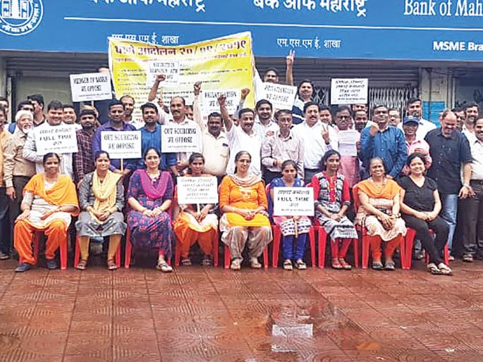 बँक कर्मचाऱ्यांचे धरणे आंदोलन