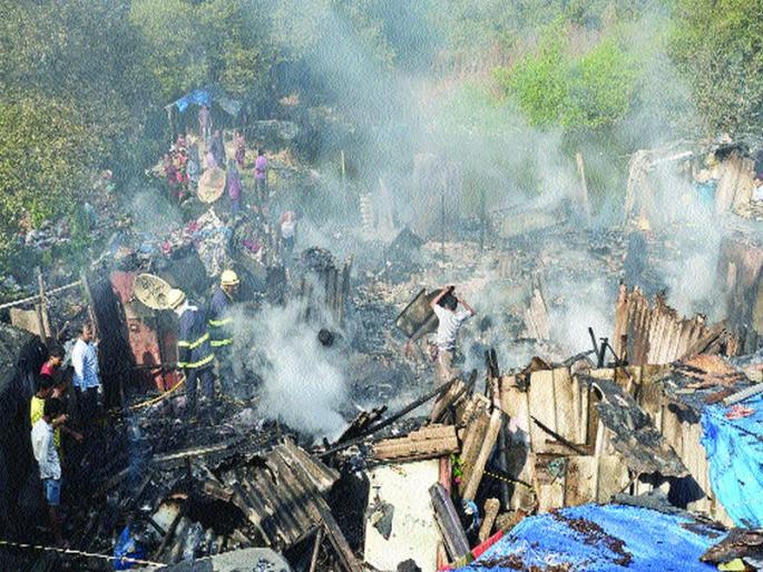 कोपरखैरणेमध्ये झोपड्यांना आग, सिलिंडरचा स्फोट : २० झोपड्या खाक