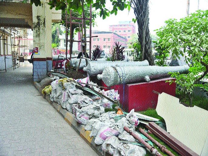 पालिका मुख्यालयासमोरील ऐतिहासिक तोफा अडगळीत